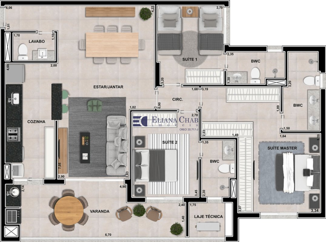 suíte máster com espaço para closet e